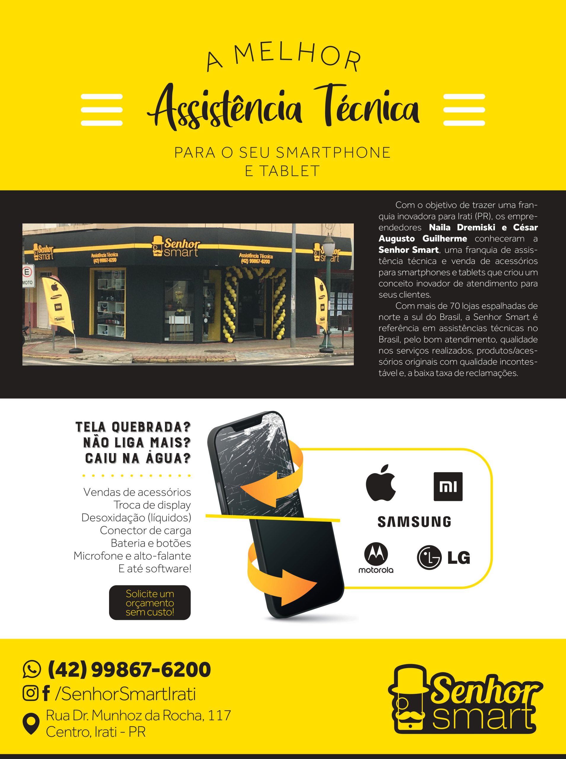 Com o objetivo de trazer uma franquia inovadora para Irati (PR), os empreendedores Naila Dremiski e César Augusto Guilherme conheceram a Senhor Smart, uma franquia de assistência técnica e venda de acessórios para smartphones e tablets que criou um conceito inovador de atendimento para seus clientes.