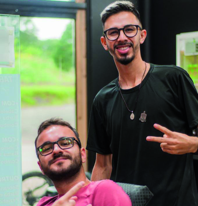 “Mesmo assim, sempre fui feliz, por mais simples que fosse, e cada conquista nova era uma comemoração. Aos poucos, tudo foi ganhando forma, conforme ia aumentando os clientes, eu implementava as novidades na barbearia. Hoje, depois de quatro anos e meio, estamos com quatro barbeiros e uma recepcionista, contamos com ambiente climatizado, cadeiras de alto-padrão, bancadas e espelhos, tudo da melhor qualidade”, comemora Bruno.