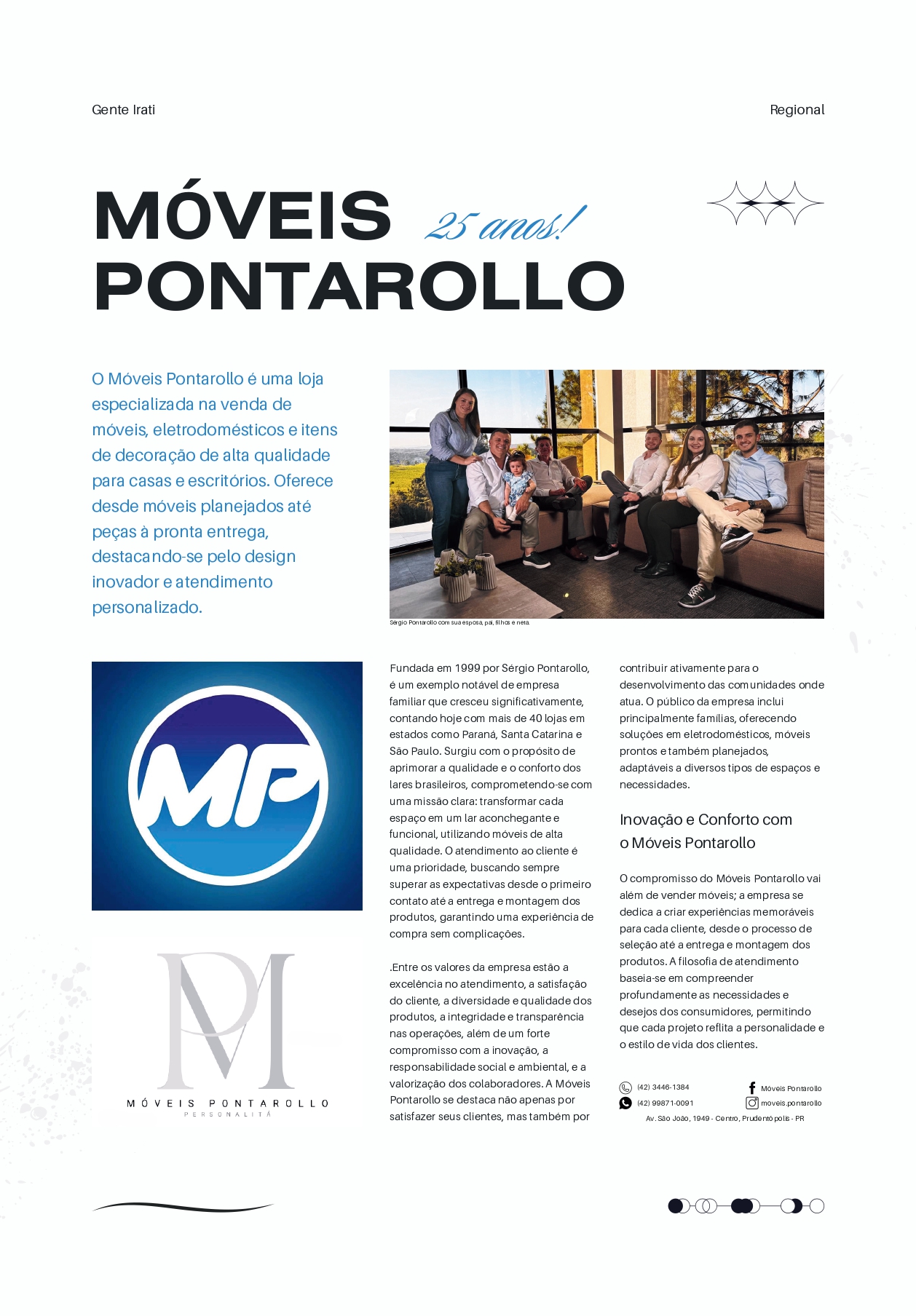 Fundada em 1999 por Sérgio Pontarollo, é um exemplo notável de empresa familiar que cresceu significativamente, contando hoje com mais de 40 lojas em estados como Paraná, Santa Catarina e São Paulo. Surgiu com o propósito de aprimorar a qualidade e o conforto dos lares brasileiros, comprometendo-se com uma missão clara: transformar cada espaço em um lar aconchegante e funcional, utilizando móveis de alta qualidade. O atendimento ao cliente é uma prioridade, buscando sempre superar as expectativas desde o primeiro contato até a entrega e montagem dos produtos, garantindo uma experiência de compra sem complicações.